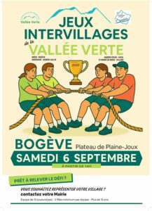 La commune de Bogève organise les Jeux Intervillages sur le plateau de Plaine-Joux, le samedi 6 septembre 2025, à partir de 14h Les villages invités : Boëge, Bogève, Burdignin, Habère-Lullin, Habère-Poche, Saxel, Saint-André-de-Boëge et Villard. Chaque commune est invitée à constituer une équipe de 10 participants (+18 ans), composée d’au moins 2 femmes et 2…
