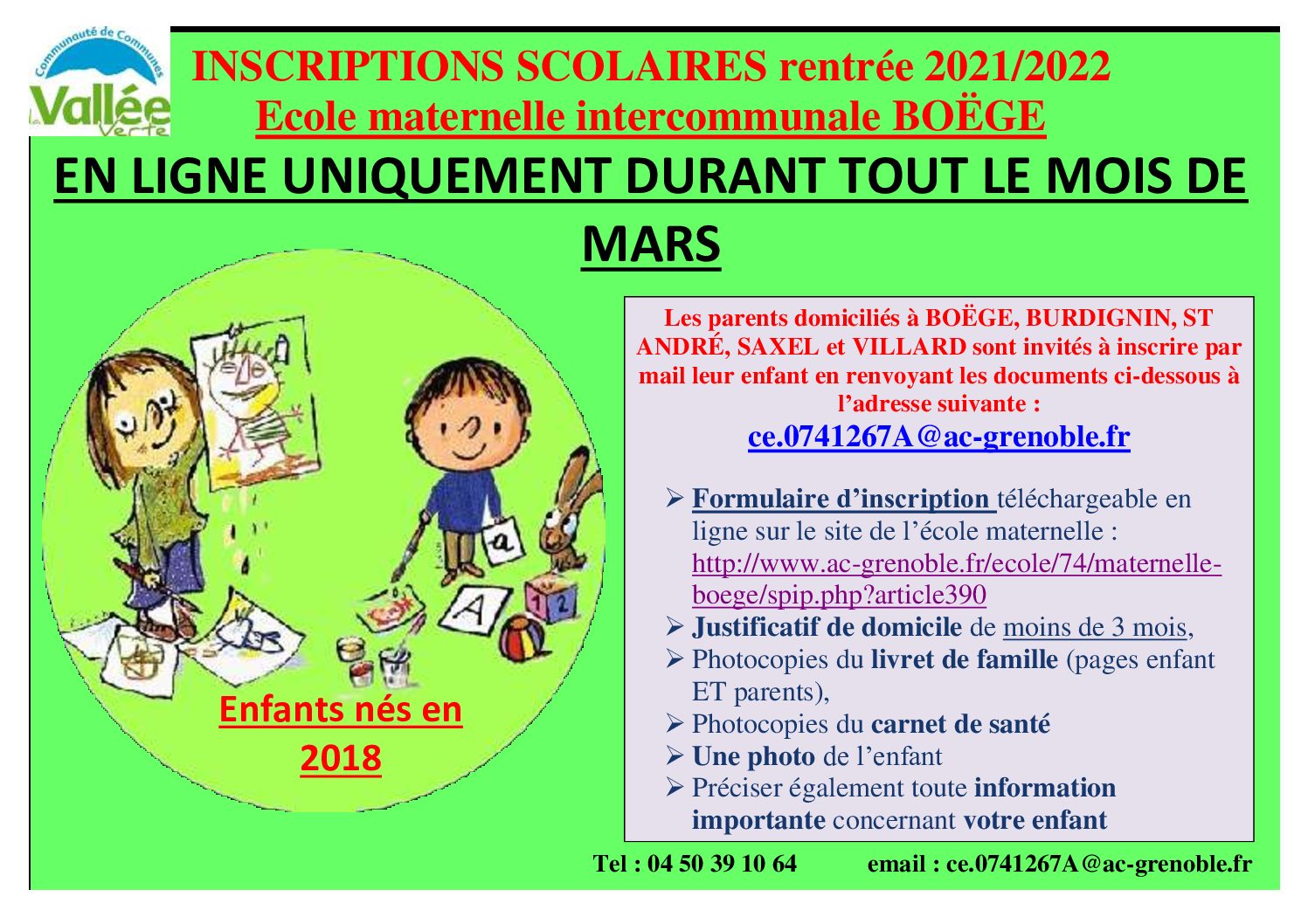 DEMARCHES INSCRIPTIONS ECOLE MATERNELLE BOEGE 2021