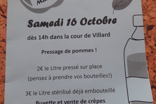 FÊTE DE LA MAUDE 15 octobre 2021 Bonjour Bonjour ! Vive l’Automne et la FÊTE DE LA MAUDE Venez soutenir l’APE Villard/Burdignin samedi 16 octobre 14h (École Villard) 2 euros le litre pressé , buvette, crêpes … On vous attend ! Articles connexes Non classé·5 décembre 2025PROCHAINE REUNION DU CONSEIL MUNICIPALMardi 09 décembre à 19h00 Ordre du jour… Non classé·31 octobre 2025PROCHAINE RÉUNION CONSEIL MUNICIPALProchaine réunion mardi 4novembre – 19h Ordre du… Non classé·6 octobre 2025LA COMMUNE LOUE APPARTEMENT DANS LE BÂTIMENT LA FRUITIÈRELa commune de BURDIGNIN LOUE APPARTEMENT dans le…