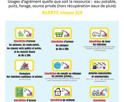L’arrêté préfectoral de restrictions temporaires de certains usages de l’eau  est consultable sur le site internet de la préfecture, à la rubrique sécheresse sous :