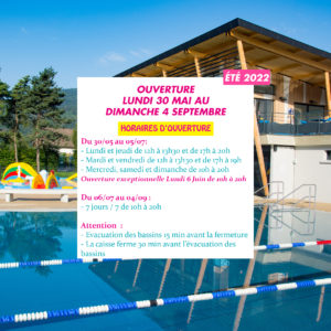 OUVERTURE DE LA PISCINE BOEGE 24 mai 2022 Les beaux jours arrivent !! La piscine « La Vague » ouvre ses portes au public à partir du lundi 30 mai Articles connexes Non classé·5 décembre 2025PROCHAINE REUNION DU CONSEIL MUNICIPALMardi 09 décembre à 19h00 Ordre du jour… Non classé·31 octobre 2025PROCHAINE RÉUNION CONSEIL MUNICIPALProchaine réunion mardi 4novembre – 19h Ordre du… Non classé·6 octobre 2025LA COMMUNE LOUE APPARTEMENT DANS LE BÂTIMENT LA FRUITIÈRELa commune de BURDIGNIN LOUE APPARTEMENT dans le…